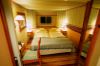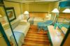 В каюте: частная палуба на 4 каюты, морской воздух в каюте, одна двуспальная кровать, диван, холодильник, кондиционер, гардероб, телевизор, телефон, фен, сейф, халаты, увлажнитель воздуха, кофемашина, чайник. Ванная комната с ванной и туалетом.